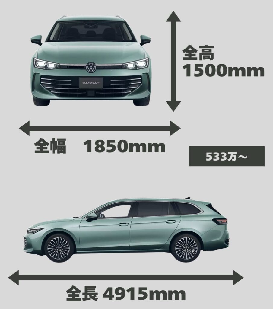 | Passat | ステーションワゴン | 4915 | 1850 | 1500 | 533 |