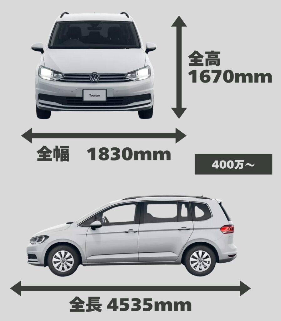 | Golf Touran | ミニバン (7人乗) | 4535 | 1830 | 1670 | 400 |