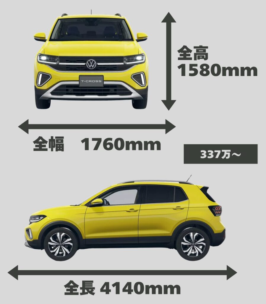 | T-Cross | コンパクトSUV | 4140 | 1760 | 1580 | 337 |