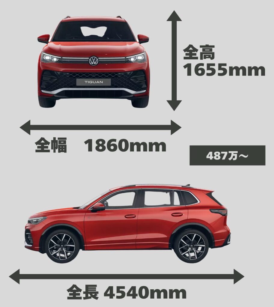 | Tiguan | ミドルSUV | 4540 | 1860 | 1655 | 487 |