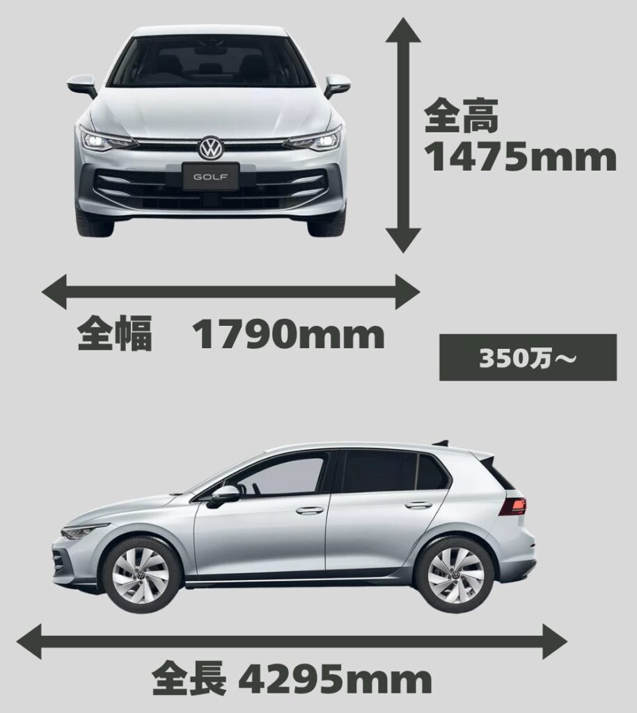 | Golf | ハッチバック | 4295 | 1790 | 1475 | 350 |