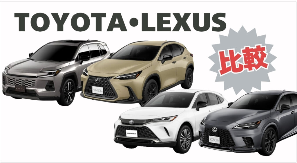 トヨタとレクサスの人気SUV、RAV4, ハリアー, NX, RXのサイズや価格を徹底比較!あなたのライフスタイルにぴったりの一台を見つけませんか?アウトドア派から都市型ユーザーまで、最適な選び方をプロが解説します。