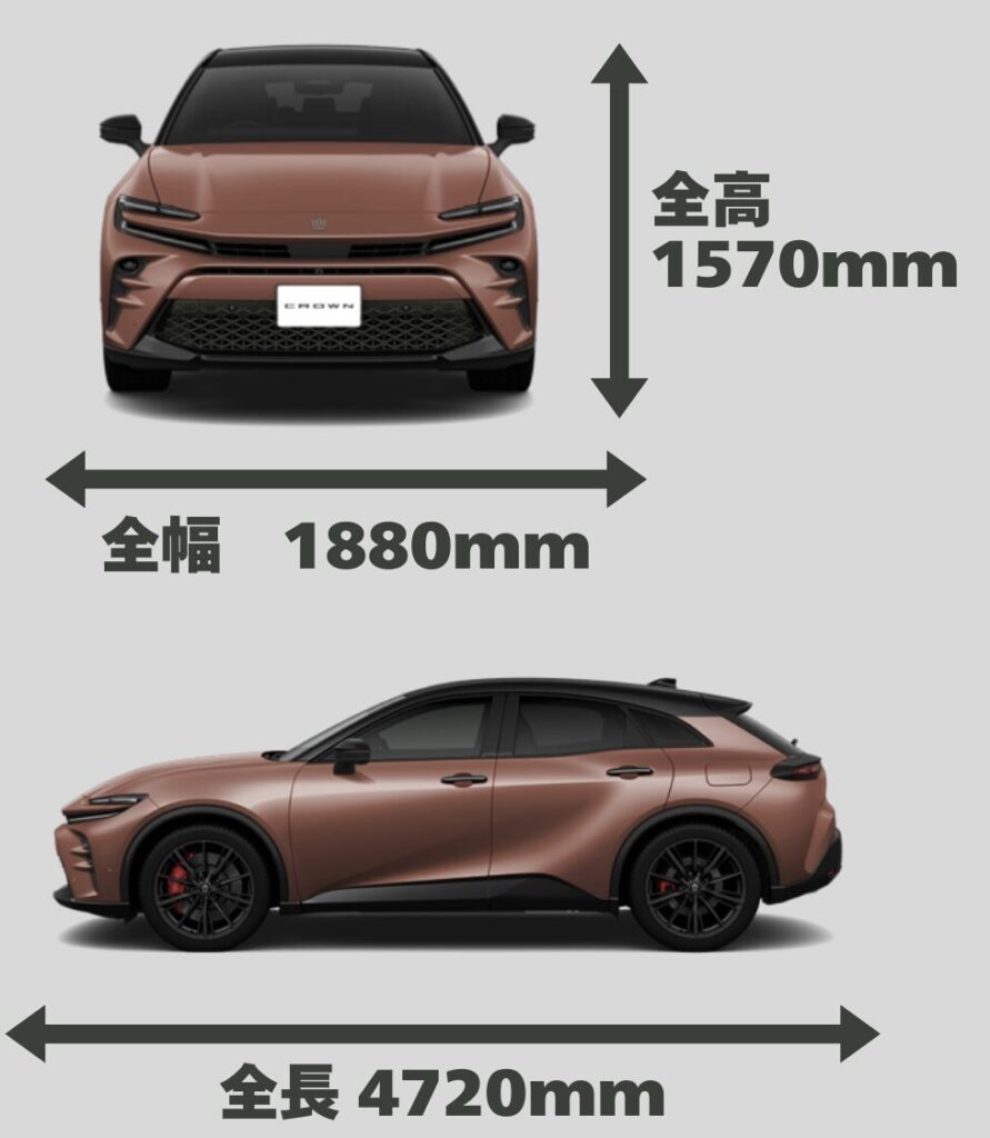 全幅1,880mmと聞くと「大きいな」と感じるかもしれませんが、クラウンスポーツはタイヤが四隅に配置されており、車両感覚が掴みやすいのが特徴です。