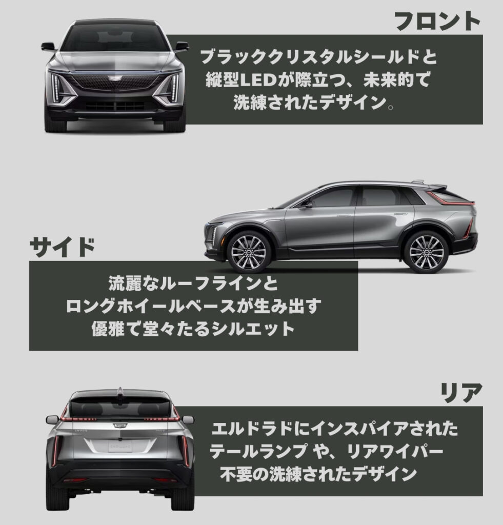 - キャデラックLYRIQの圧倒的な存在感を放つ外装デザイン
