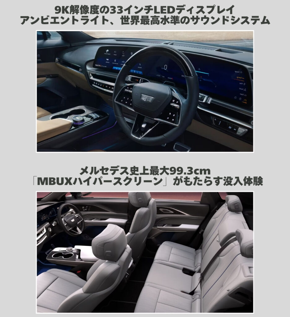 - 9K解像度の33インチLEDディスプレイ:運転席から助手席まで広がる湾曲した大型ディスプレイは、視認性も抜群。ナビゲーションやエンターテインメントシステムが統合され、まるでSF映画の世界に飛び込んだような体験ができます。※Apple CarPlay / Android Autoにも対応しており、スマートフォンとの連携もスムーズです。