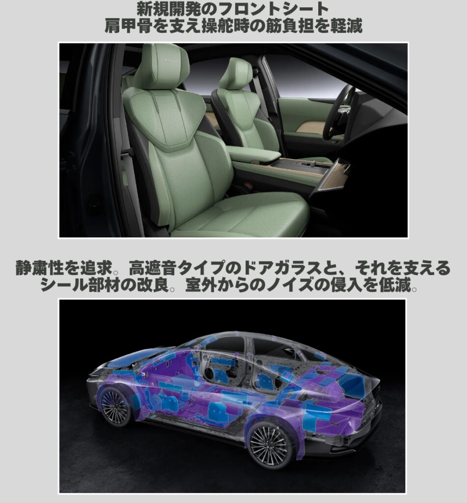 新型ESは、従来のモデルよりも全長を165mm、ホイールベースを80mm延長しました。これにより、後部座席の足元スペースもゆとりが生まれ、乗員全員が広々とした快適な空間でドライブを楽しめます。
