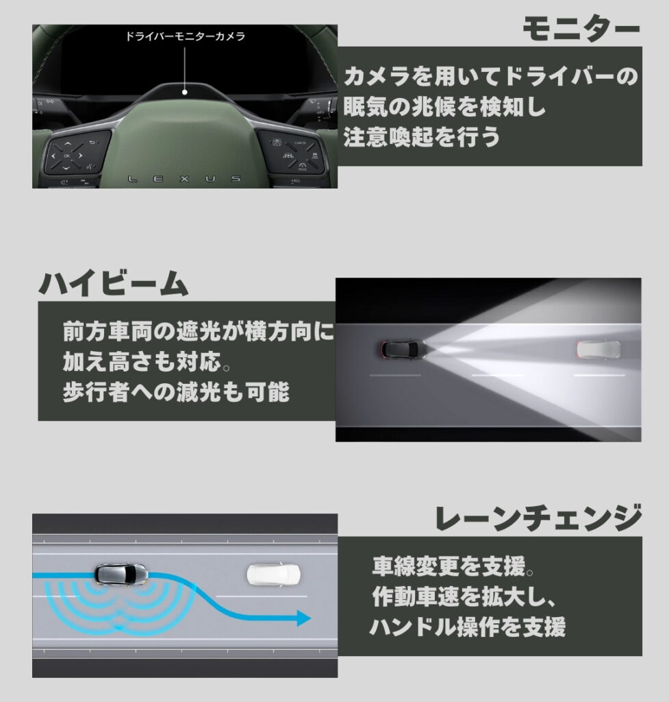 新型レクサスESは、ドライバーの安全を第一に考え、様々な先進技術を搭載しています。