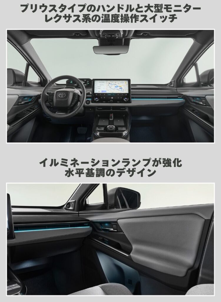 - 特徴: プリウスタイプのハンドルと大型モニター、そしてレクサス系の温度操作スイッチを採用。