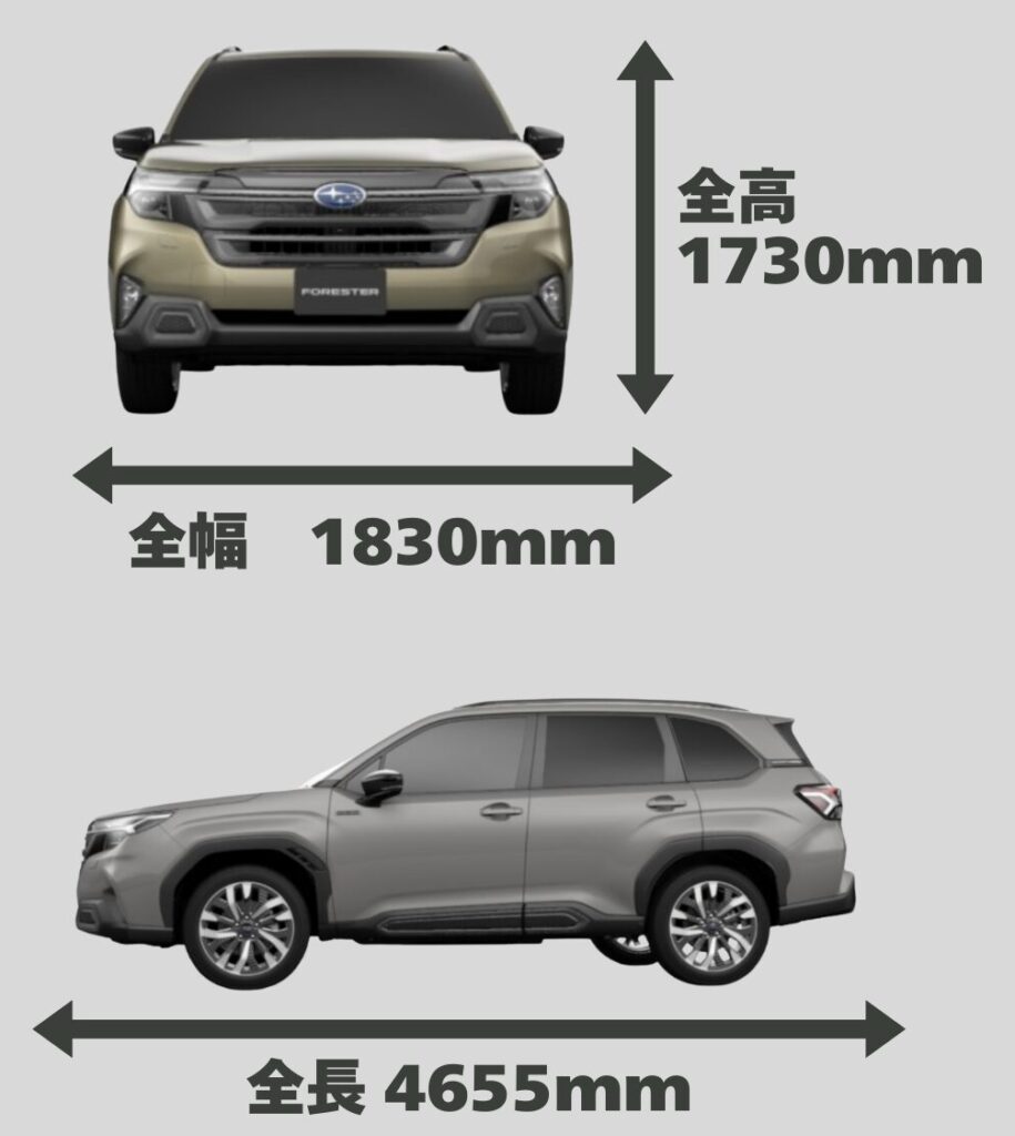 SUV選びで一番悩むのが「大きさ」ではないでしょうか。新型フォレスターのボディサイズは以下の通りです。