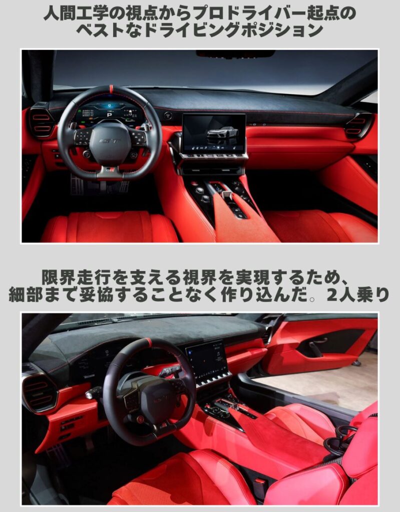 インテリア(内装)は、プロドライバーの意見を取り入れ、人間工学に基づいて設計されています。