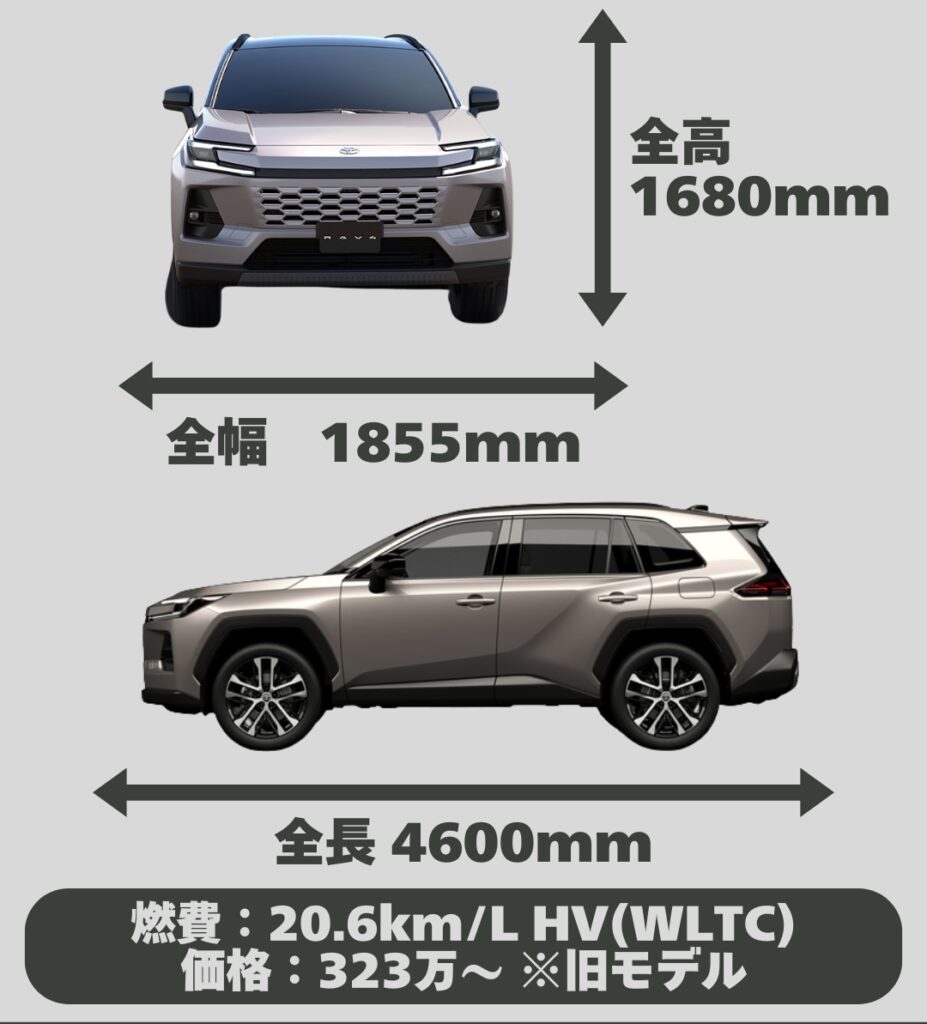 トヨタ RAV4 | 1,855mm | 4,600mm | 1,680mm | 323万円〜 |