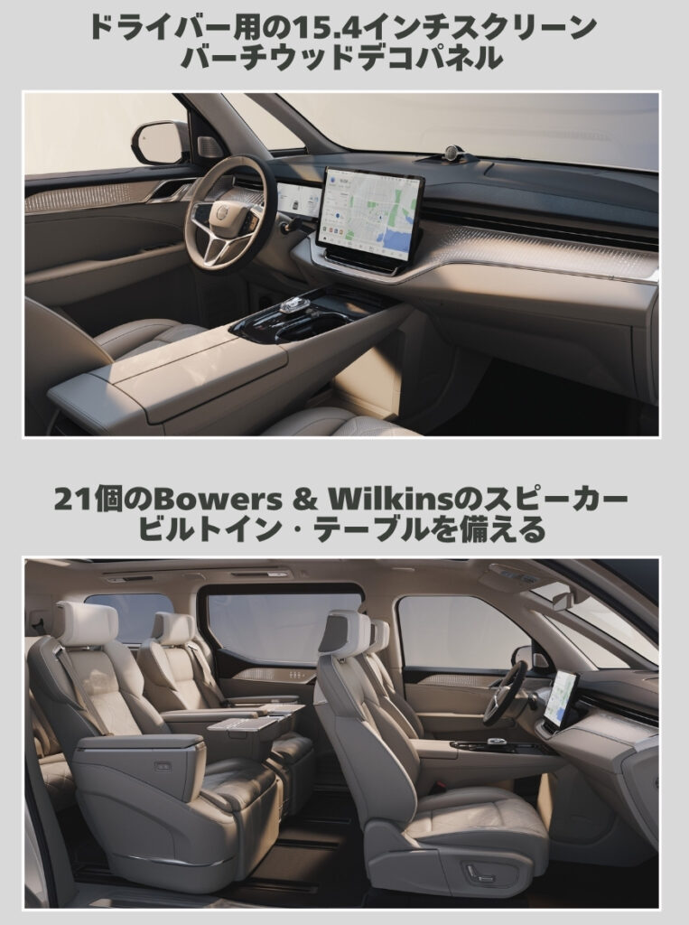 - 内装:15.4インチスクリーン、21個のBowers & Wilkinsスピーカー、クリスタル装飾による極上の快適空間